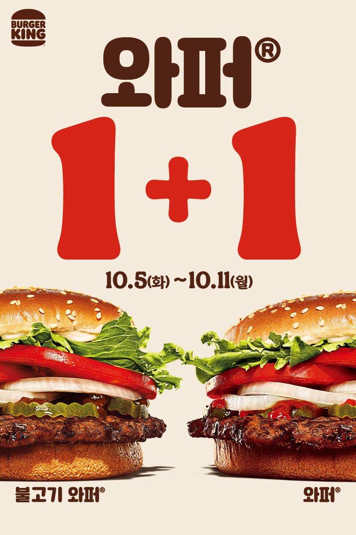 버거킹 와퍼 1+1 이벤트 버거킹 와퍼 1+1 이벤트 정보 포스팅입니다. 버거킹 와퍼 1+1 이벤트를 진행하네요. 이벤트 기간 : 2021년 10월 5일 ~ 2021년 10월 11일 핫딜/식품&생활 2021.10.05