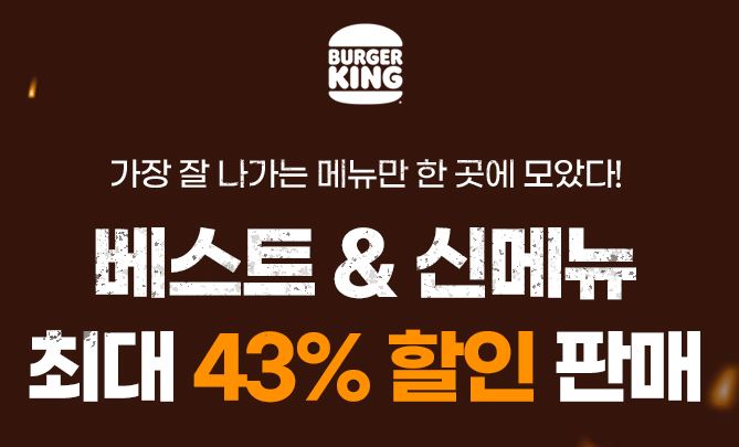 버거킹 최대 43% 할인 버거킹 최대 43% 할인 정보 포스팅입니다. 버거킹 다양한 메뉴를 할인 판매하네요. 할인 메뉴 : 와퍼+앵그리너겟킹4조각 등 버거킹 최대 43% 할인 정보 [링크] 핫딜/식품&생활 2021.09.27