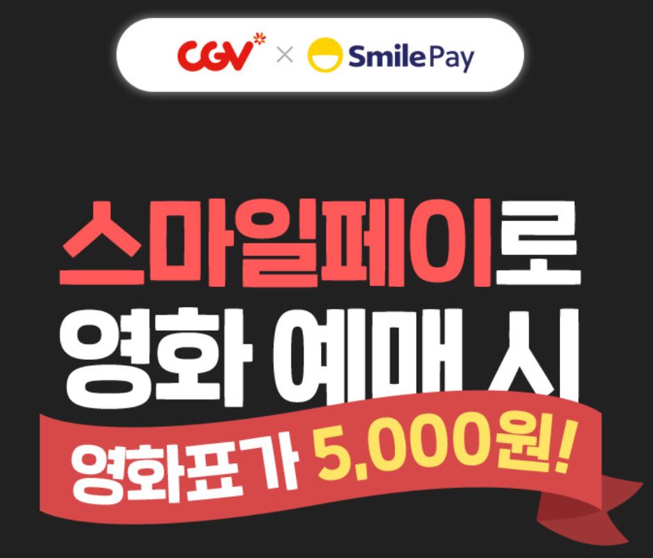 CGV 스마일페이 할인 이벤트 CGV 스마일페이 할인 이벤트 정보 포스팅입니다. CGV 스마일페이로 영화 예매시 영화표 5000원 이벤트를 진행하네요. 이벤트 기간 : 2021년 9월 30일까지 CGV 스마일페이 할인 이벤트 정보 [링크] 핫딜/식품&생활 2021.09.22