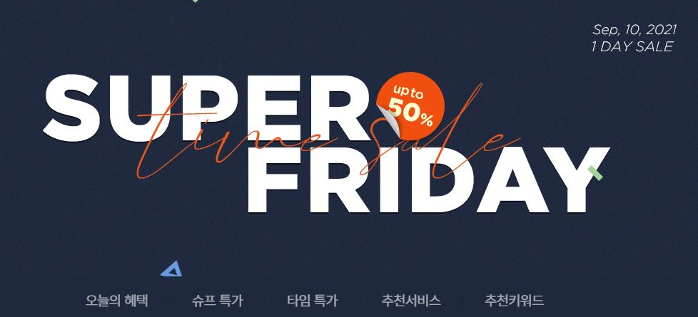 G마켓 슈퍼 프라이데이 최대 50% 세일 G마켓 슈퍼 프라이데이 최대 50% 세일 정보 포스팅입니다. G마켓 사이트에서 할인 이벤트를 진행하네요. 할인 품목 : 비타민, 유산균 등 이벤트 기간 : 2021년 9월 10일까지 G마켓 슈퍼 프라이데이 최대 50% 세일 정보 [링크] 핫딜/식품&생활 2021.09.10