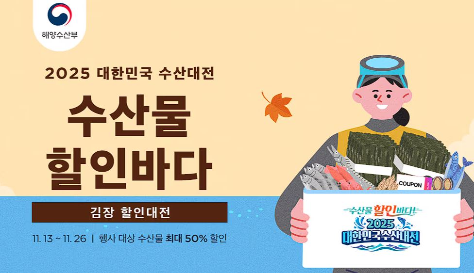 SSG 2025 대한민국 수산대전 SSG 2025 대한민국 수산대전 정보 포스팅입니다. 다양한 제품을 할인 판매하네요. 할인 품목 : 갈치, 전복, 멸치 등 이벤트 기간 : 2025년 11월 26일까지 SSG 2025 대한민국 수산대전 정보 [링크] 핫딜/식품&생활 2025.11.17