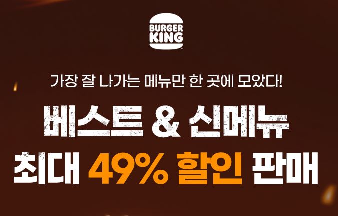 버거킹 베스트 & 신메뉴 최대 49% 할인 버거킹 베스트 & 신메뉴 최대 49% 할인 정보 포스팅입니다. 버거킹 다양한 메뉴를 할인 판매하네요. 할인 메뉴 : 불고기와퍼 주니어세트 등 버거킹 베스트 & 신메뉴 최대 49% 할인 정보 [링크] 핫딜/식품&생활 2021.08.25