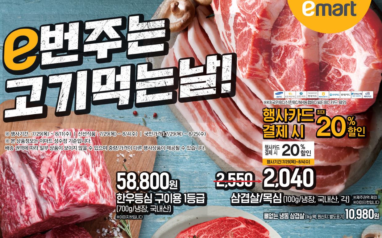 이마트 할인 이벤트 이마트 할인 이벤트 정보 포스팅입니다. 이마트 사이트에서 할인 이벤트를 진행하네요. 할인 품목 : 삼겹살, 캠핑용품 등 이마트 할인 이벤트 정보 [링크] 핫딜/식품&생활 2021.07.30