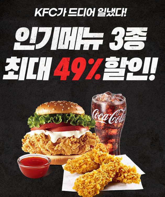 KFC 인기메뉴 3종 최대 49% 할인 KFC 인기메뉴 3종 최대 49% 할인 정보 포스팅입니다. KFC 다양한 메뉴를 할인 판매하네요. 할인 메뉴 : 징거텐더세트, 트윈타원팩 등 사용기간 : 2021년 9월 8일까지 KFC 인기메뉴 3종 최대 49% 할인 정보 [링크] 핫딜/식품&생활 2021.08.02