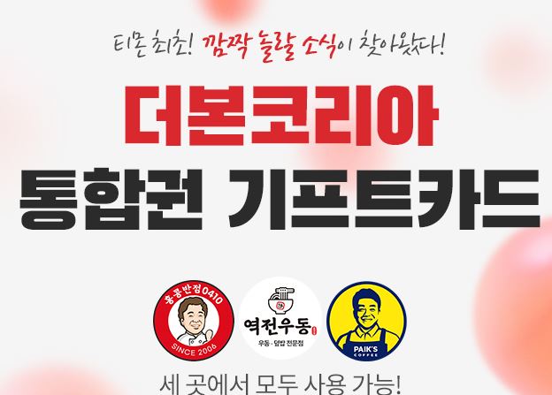 더본코리아 통합권 기프트카드 11% 할인 더본코리아 통합권 기프트카드 11% 할인 정보 포스팅입니다. 더본코리아 통합권 기프트카드를 할인 판매하네요. 사용처 : 빽다방, 역전우동, 홍콩반점 정가 1만원 / 할인가 8900원 더본코리아 통합권 기프트카드 11% 할인 정보 [링크] 핫딜/식품&생활 2021.08.04
