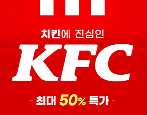 KFC 최대 50% 할인 KFC 최대 50% 할인 정보 포스팅입니다. KFC 다양한 메뉴를 할인 판매하네요. 할인 메뉴 : 더블치킨세트, 징거엔타워팩 등 KFC 최대 50% 할인 정보 [링크] 핫딜/식품&생활 2021.06.21
