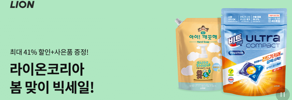라이온코리아 봄맞이 빅세일 라이온코리아 봄맞이 빅세일 정보 포스팅입니다. 라이온코리아 다양한 제품을 할인 판매하네요. 할인 품목 : 세제, 칫솔, 핸드워시 등 라이온코리아 봄맞이 빅세일 정보 [링크] 핫딜/식품&생활 2025.05.22