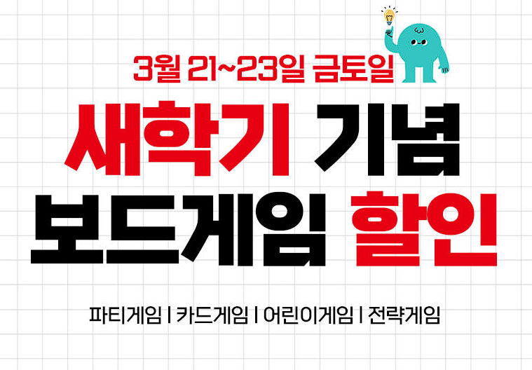 11번가 새학기 기념 보드게임 할인 11번가 새학기 기념 보드게임 할인 정보 포스팅입니다. 11번가 다양한 보드게임을 할인 판매하네요. 할인 품목 : 스도쿠, 도미노 등 이벤트 기간 : 2025년 3월 21일 ~ 2025년 3월 23일 11번가 새학기 기념 보드게임 할인 정보 [링크] 핫딜/식품&생활 2025.03.21