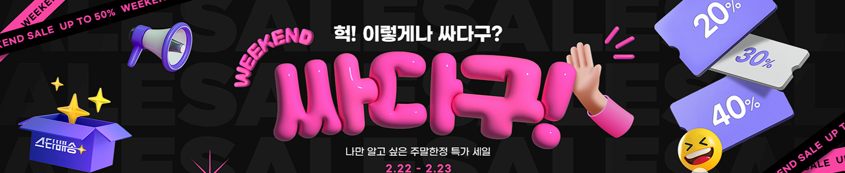 G마켓 주말 싸다구 할인 이벤트 G마켓 주말 싸다구 할인 이벤트 정보 포스팅입니다. G마켓 다양한 제품을 할인 판매하네요. 할인 품목 : 식품, 가전, 생활용품 등 이벤트 기간 : 2025년 2월 22일 ~ 2025년 2월 23일 G마켓 주말 싸다구 할인 이벤트 정보 [링크] 핫딜/식품&생활 2025.02.22