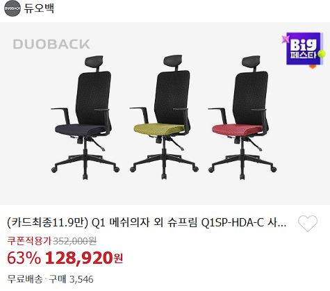 듀오백 Q1 메쉬의자 할인 듀오백 Q1 메쉬의자 할인 정보 포스팅입니다. 듀오백 Q1 메쉬의자 할인 판매하네요. 할인가 128920원 무료배송 듀오백 Q1 메쉬의자 할인 정보 [링크] 핫딜/식품&생활 2025.02.18