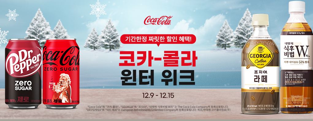 코카콜라 윈터 위크 이벤트 코카콜라 윈터 위크 이벤트 정보 포스팅입니다. 코카콜라 다양한 제품을 할인 판매하네요. 할인 품목 : 코카콜라, 조지아 커피, 환타 등 이벤트 기간 : 2024년 12월 15일까지 코카콜라 윈터 위크 이벤트 정보 [링크] 핫딜/식품&생활 2024.12.10