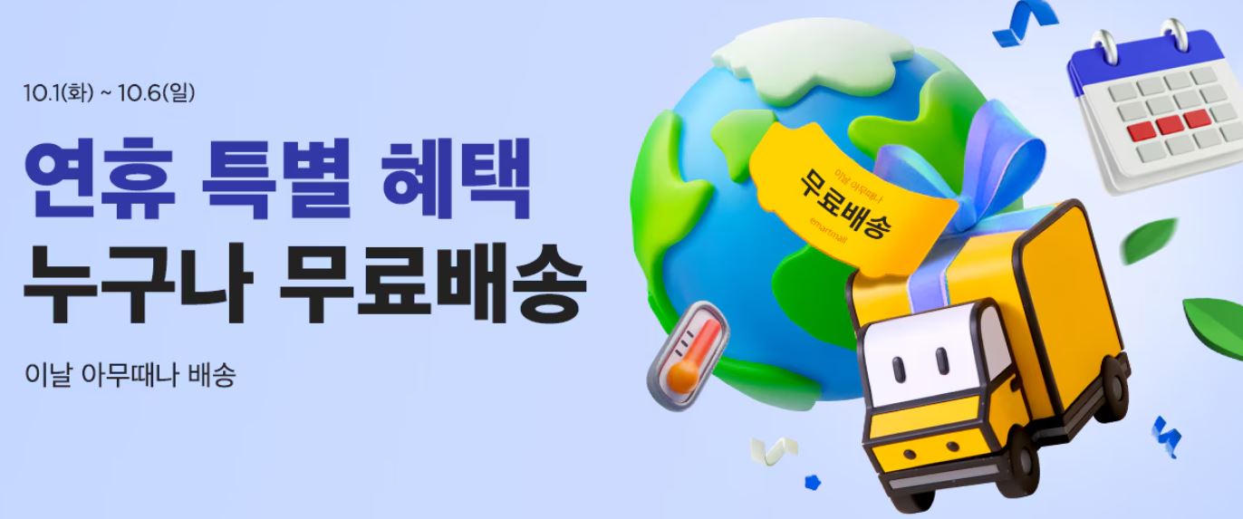 이마트몰 누구나 무료배송 이벤트 이마트몰 누구나 무료배송 이벤트 정보 포스팅입니다. 이마트몰 무료배송 이벤트를 진행하네요. 이날 아무때나 배송으로 주문 하면 무료배송. 2만원 이상 주문 시 쿠폰 사용 가능. 이벤트 기간 : 2024년 10월 6일까지 이마트몰 누구나 무료배송 이벤트 정보 [링크] 핫딜/식품&생활 2024.10.02