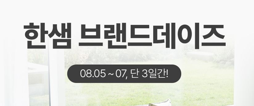 한샘 브랜드 데이즈 한샘 브랜드 데이즈 정보 포스팅입니다. 한샘 다양한 제품을 할인 판매하네요. 할인 품목 : 소파, 책장, 식탁 등 이벤트 기간 : 2024년 8월 7일까지 한샘 브랜드 데이즈 정보 [링크] 핫딜/식품&생활 2024.08.07
