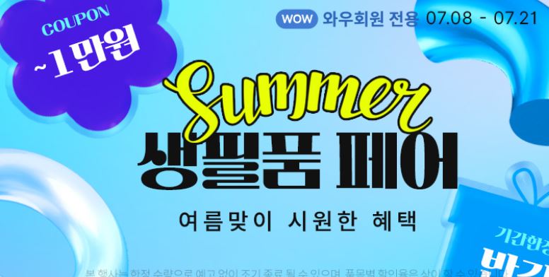 쿠팡 생필품 페어 이벤트 쿠팡 생필품 페어 이벤트 정보 포스팅입니다. 쿠팡 다양한 제품을 할인 판매하네요. 할인 품목 : 화장품, 세제 등 이벤트 기간 : 2024년 7월 8일 ~ 2024년 7월 21일 쿠팡 생필품 페어 이벤트 정보 [링크] "이 포스팅은 제휴마케팅이 포함된 광고로 일정 커미션을 지급 받을 수 있습니다." 핫딜/식품&생활 2024.07.08