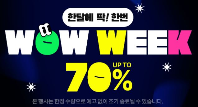 쿠팡 와우 위크 최대 70% 세일 쿠팡 와우 위크 최대 70% 세일 정보 포스팅입니다. 쿠팡 다양한 제품을 할인 판매하네요. 할인 품목 : 생활용품, 화장품, 영양제 등 쿠팡 와우 위크 최대 70% 세일 정보 [링크] "이 포스팅은 링크프라이스 이벤트 참여를 위해 작성되었습니다." 핫딜/식품&생활 2024.06.19