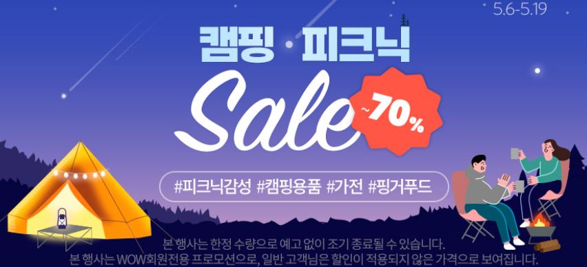 쿠팡 캠핑/피크닉 최대 70% 세일 쿠팡 캠핑/피크닉 최대 70% 세일 정보 포스팅입니다. 쿠팡 다양한 제품을 할인 판매하네요. 할인 품목 : 텐트, 의자 등 이벤트 기간 : 2024년 5월 19일까지 쿠팡 캠핑/피크닉 최대 70% 세일 정보 [링크] "이 포스팅은 제휴마케팅이 포함된 광고로 일정 커미션을 지급 받을 수 있습니다." 핫딜/식품&생활 2024.05.07