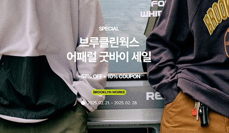 브루클린웍스 어패럴 굿바이 세일 브루클린웍스 어패럴 굿바이 세일 정보 포스팅입니다. 브루클린웍스 다양한 제품을 할인 판매하네요. 할인 품목 : 티셔츠, 자켓, 팬츠 등 이벤트 기간 : 2025년 2월 28일까지 브루클린웍스 어패럴 굿바이 세일 정보 [링크] 핫딜/패션&스포츠 2025.02.24