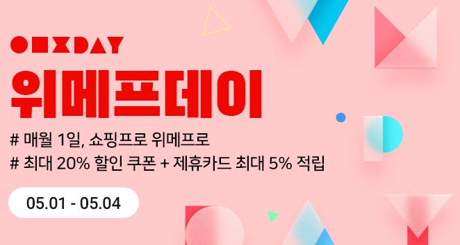 위메프데이 이벤트 위메프데이 이벤트 정보 포스팅입니다. 위메프 사이트에서 할인 이벤트를 진행하네요. 할인 품목 : 의류, 식품, 생활용품 등 이벤트 기간 : 2022년 5월 4일까지 위메프데이 이벤트 정보 [링크] 핫딜/패션&스포츠 2022.05.03