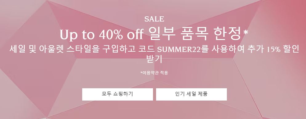 스와로브스키 최대 40% 세일 + 15% 할인코드 스와로브스키 최대 40% 세일 + 15% 할인코드 정보 포스팅입니다. 스와로브스키 사이트에서 할인 이벤트를 진행하네요. 할인 품목 : 목걸이, 귀걸이 등 할인코드 : SUMMER22 스와로브스키 최대 40% 세일 + 15% 할인코드 정보 [링크] 핫딜/패션&스포츠 2022.07.02