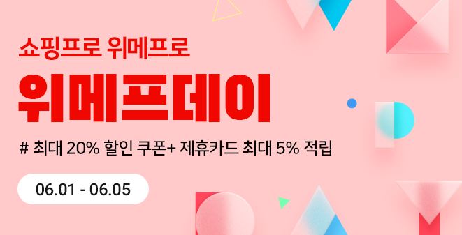 위메프데이 이벤트 위메프데이 이벤트 정보 포스팅입니다. 위메프 사이트에서 할인 이벤트를 진행하네요. 할인 품목 : 의류, 가구, 가전 등 이벤트 기간 : 2022년 6월 5일까지 위메프데이 이벤트 정보 [링크] 핫딜/패션&스포츠 2022.06.02