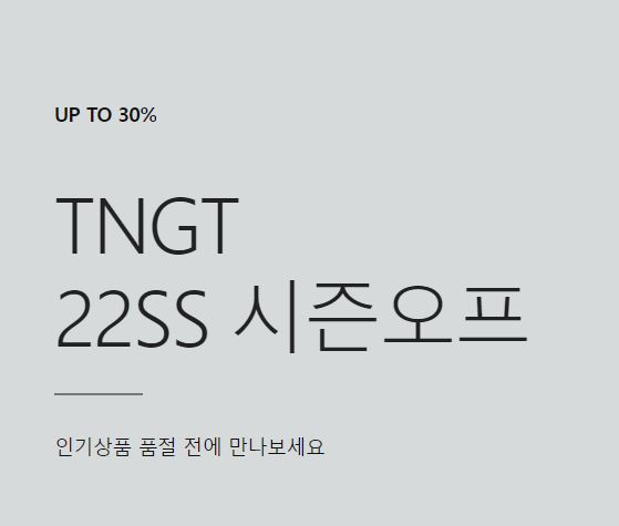 TNGT 22SS 시즌오프 세일 TNGT 22SS 시즌오프 세일 정보 포스팅입니다. TNGT 다양한 제품을 할인 판매하네요. 할인 품목 : 자켓, 맨투맨 등 TNGT 22SS 시즌오프 세일 정보 [링크] 핫딜/패션&스포츠 2022.04.19