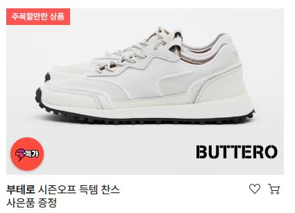 부테로 시즌오프 최대 57% 세일 부테로 시즌오프 최대 57% 세일 정보 포스팅입니다. 부테로 다양한 제품을 할인 판매하네요. 할인 품목 : 운동화, 슬리퍼 등 부테로 시즌오프 최대 57% 세일 정보 [링크] 핫딜/패션&스포츠 2024.11.20