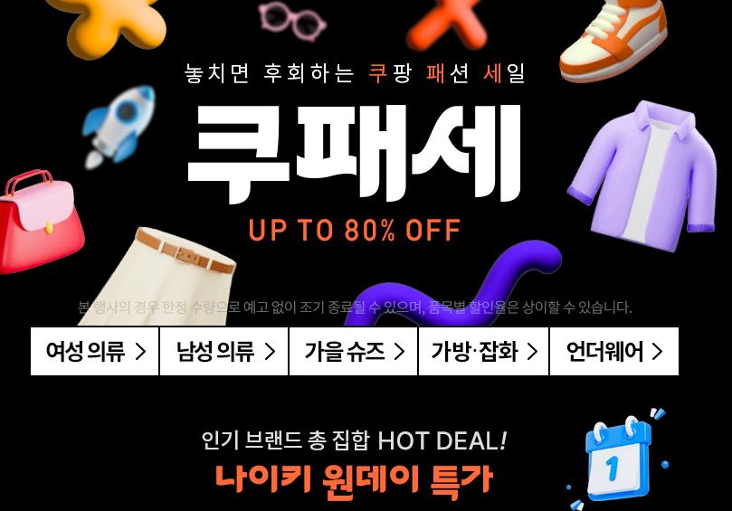 쿠팡 패션 세일 최대 80% 할인 쿠팡 패션 세일 최대 80% 할인 정보 포스팅입니다. 쿠팡 다양한 제품을 할인 판매하네요. 할인 품목 : 의류, 신발, 가방 등 쿠팡 패션 세일 최대 80% 할인 정보 [링크] "이 포스팅은 제휴마케팅이 포함된 광고로 일정 커미션을 지급 받을 수 있습니다." 핫딜/패션&스포츠 2024.08.26
