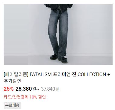 페이탈리즘 할인 이벤트 페이탈리즘 할인 이벤트 정보 포스팅입니다. 페이탈리즘 다양한 제품을 할인 판매하네요. 할인 품목 : 팬츠 무료배송 페이탈리즘 할인 이벤트 정보 [링크] 핫딜/패션&스포츠 2024.07.12