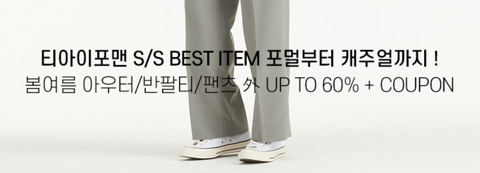 티아이포맨 최대 60% 세일 티아이포맨 최대 60% 세일 정보 포스팅입니다. 티아이포맨 다양한 제품을 할인 판매하네요. 할인 품목 : 티셔츠, 자켓, 팬츠 등 티아이포맨 최대 60% 세일 정보 [링크] 핫딜/패션&스포츠 2024.07.12