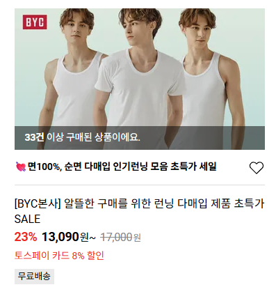 BYC 할인 이벤트 BYC 할인 이벤트 정보 포스팅입니다. BYC 다양한 제품을 할인 판매하네요. 할인 품목 : 런닝, 매쉬브라 등 4만원 이상 무료배송 BYC 할인 이벤트 정보 [링크] 핫딜/패션&스포츠 2026.03.06