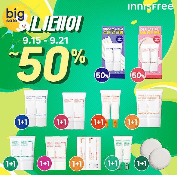이니스프리 이니데이 최대 50% 세일 이니스프리 이니데이 최대 50% 세일 정보 포스팅입니다. 이니스프리 다양한 제품을 할인 판매하네요. 할인 품목 : 클렌징폼, 수분크림 등 이벤트 기간 : 2025년 9월 21일까지 무료배송 이니스프리 이니데이 최대 50% 세일 정보 [링크] 핫딜/화장품 2025.09.16