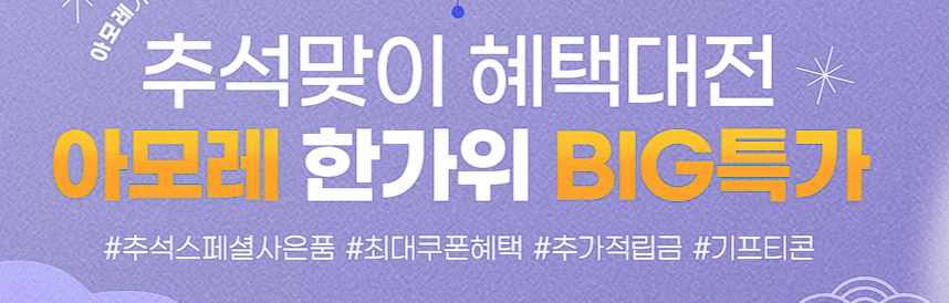 아모레 추석맞이 할인 이벤트 아모레 추석맞이 할인 이벤트 정보 포스팅입니다. 아모레 다양한 제품을 할인 판매하네요. 할인 품목 : 화장품, 샴푸 등 이벤트 기간 : 2025년 9월 30일까지 아모레 추석맞이 할인 이벤트 정보 [링크] 핫딜/화장품 2025.09.22