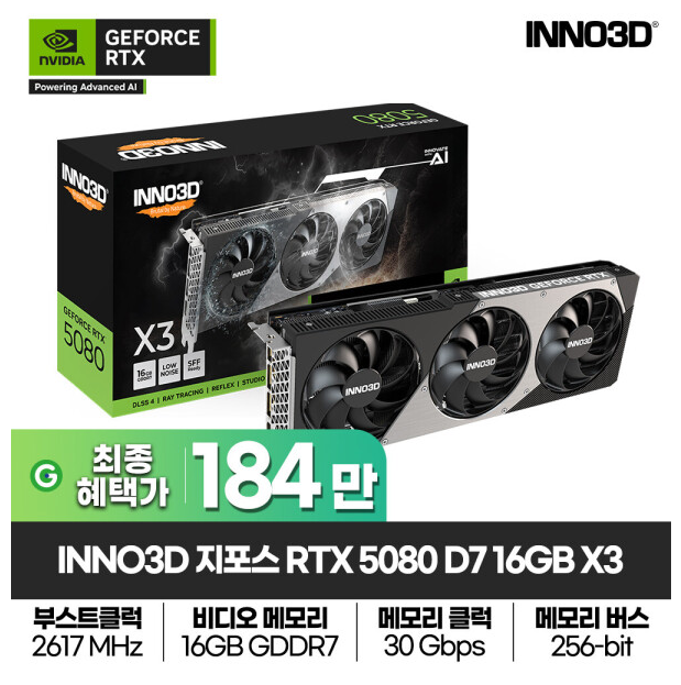 INNO3D 지포스 RTX 5080 D7 16GB X3 그래픽카드 할인 INNO3D 지포스 RTX 5080 D7 16GB X3 그래픽카드 할인 정보 포스팅입니다. INNO3D 지포스 RTX 5080 D7 16GB X3 그래픽카드 할인 판매하네요. 할인가 1849000원 무료배송 INNO3D 지포스 RTX 5080 D7 16GB X3 그래픽카드 할인 정보 [링크] 핫딜/PC&가전 2026.04.15