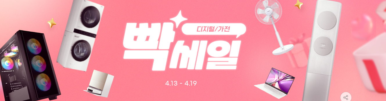 G마켓 디지털/가전 빡세일 G마켓 디지털/가전 빡세일 정보 포스팅입니다. G마켓 다양한 제품을 할인 판매하네요. 할인 품목 : 모니터, 노트북, 냉장고 등 이벤트 기간 : 2026년 4월 13일 ~ 2026년 4월 19일 G마켓 디지털/가전 빡세일 정보 [링크] 핫딜/PC&가전 2026.04.13