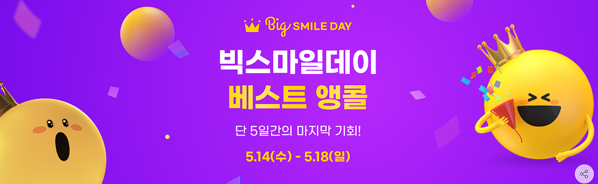 G마켓 빅스마일데이 베스트 앵콜 이벤트 G마켓 빅스마일데이 베스트 앵콜 이벤트 정보 포스팅입니다. G마켓 다양한 제품을 할인 판매하네요. 할인 품목 : 가전, 의류, 식품 등 이벤트 기간 : 2025년 5월 14일 ~ 2025년 5월 18일 G마켓 빅스마일데이 베스트 앵콜 이벤트 정보 [링크] 핫딜/PC&가전 2025.05.14