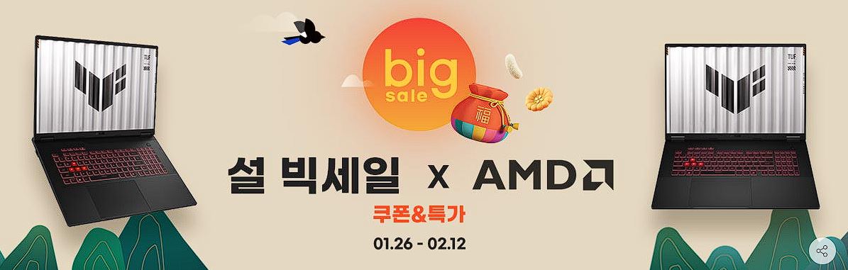 AMD 설 빅 세일 AMD 설 빅 세일 정보 포스팅입니다. 다양한 제품을 할인 판매하네요. 할인 품목 : 노트북 이벤트 기간 : 2026년 1월 26일 ~ 2026년 2월 21일 AMD 설 빅 세일 정보 [링크] 핫딜/PC&가전 2026.01.26
