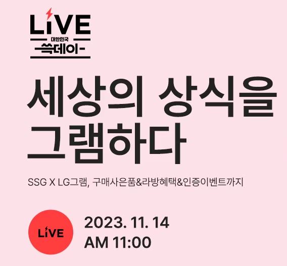 SSG LIVE LG 그램 이벤트 SSG LIVE LG 그램 이벤트 정보 포스팅입니다. SSG LIVE LG 그램 이벤트를 진행하네요. 할인 품목 : 노트북, 모니터 방송 시간 : 2023년 11월 14일 오전 11시 SSG LIVE LG 그램 이벤트 정보 [링크] 핫딜/PC&가전 2023.11.14