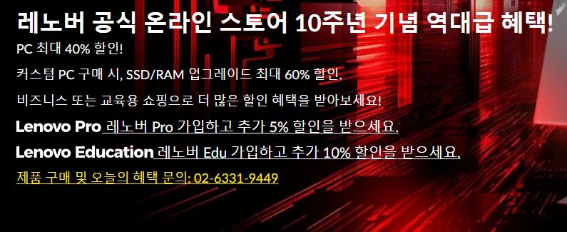 레노버 공식 온라인 스토어 10주년 기념 할인 레노버 공식 온라인 스토어 10주년 기념 할인 정보 포스팅입니다. 레노버 다양한 제품을 할인 판매하네요. 할인 품목 : 노트북, 데스크탑 레노버 공식 온라인 스토어 10주년 기념 할인 정보 [링크] 핫딜/PC&가전 2023.10.12