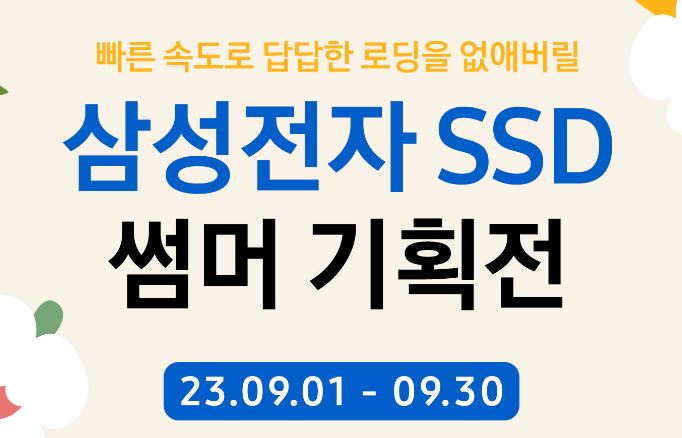 삼성전자 SSD 썸미 기획전 삼성전자 SSD 썸미 기획전 정보 포스팅입니다. 삼성전자 다양한 제품을 할인 판매하네요. 할인 품목 : 990 PRO, 970 EVO 등 이벤트 기간 : 2023년 9월 1일 ~ 2023년 9월 30일 삼성전자 SSD 썸미 기획전 정보 [링크] 핫딜/PC&가전 2023.09.01