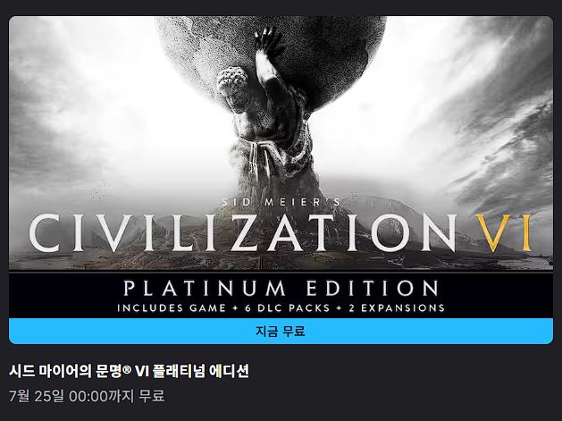 에픽게임즈 문명6 플래티넘 에디션 무료 에픽게임즈 문명6 플래티넘 에디션 무료 정보 포스팅입니다. 에픽게임즈에서 문명6 플래티넘 에디션 무료 이벤트를 진행하네요. 이벤트 기간 : 2025년 7월 24일까지 에픽게임즈 문명6 플래티넘 에디션 무료 정보 [링크] 핫딜/PC&가전 2025.07.18