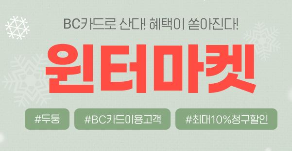 하이마트 BC카드 윈터마켓 하이마트 BC카드 윈터마켓 정보 포스팅입니다. 하이마트 사이트에서 할인 이벤트를 진행하네요. BC카드 최대 10% 청구할인 할인 품목 : 노트북, 휴대폰, 컨트롤러 등 이벤트 기간 : 2021년 12월 10일 하이마트 BC카드 윈터마켓 정보 [링크] 핫딜/PC&가전 2021.12.10