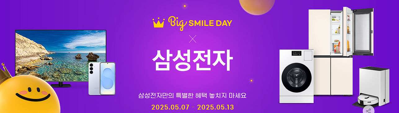삼성전자 빅 스마일데이 이벤트 삼성전자 빅 스마일데이 이벤트 정보 포스팅입니다. 삼성전자 다양한 제품을 할인 판매하네요. 할인 품목 : 모니터, 휴대폰, 노트북, 티비 등 이벤트 기간 : 2025년 5월 7일 ~ 2025년 5월 13일 삼성전자 빅 스마일데이 이벤트 정보 [링크] 핫딜/PC&가전 2025.05.07