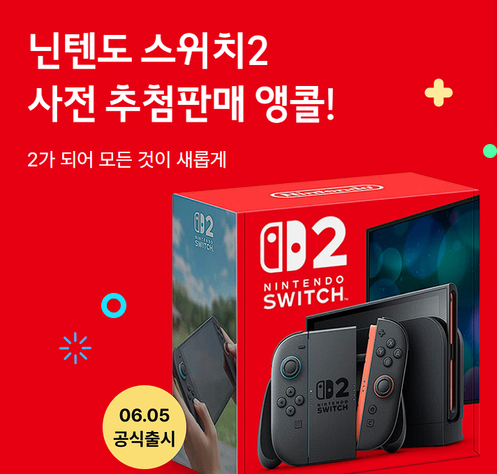 닌텐도 스위치2 2차 사전 추첨판매 닌텐도 스위치2 2차 사전 추첨판매 정보 포스팅입니다. 닌텐도 스위치2 2차 사전 추첨판매 이벤트를 진행하네요. 응모 기간 : 2025년 4월 29일 ~ 2025년 5월 11일 사전 구매 기간 : 2025년 5월 13일 ~ 2025년 5월 16일 당첨자 발표 : 2025년 5월 12일 오후 5시 닌텐도 스위치2 2차 사전 추첨판매 정보 [링크] 핫딜/PC&가전 2025.04.29