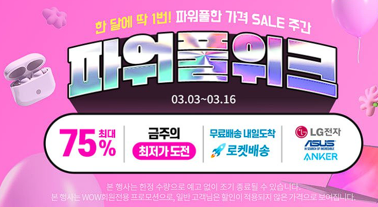 쿠팡 파워풀위크 이벤트 쿠팡 파워풀위크 이벤트 정보 포스팅입니다. 쿠팡 다양한 제품을 할인 판매하네요. 할인 품목 : 노트북, 세탁기, 충전기 등 이벤트 기간 : 2025년 3월 16일까지 쿠팡 파워풀위크 이벤트 정보 [링크] 핫딜/PC&가전 2025.03.04