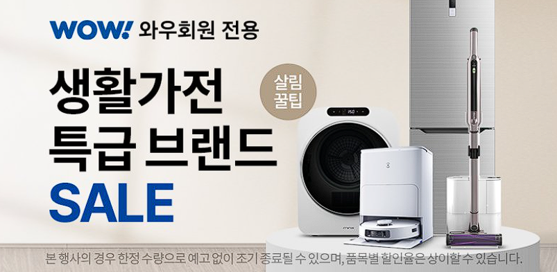 쿠팡 생활가전 특급 브랜드 세일 쿠팡 생활가전 특급 브랜드 세일 정보 포스팅입니다. 쿠팡 다양한 제품을 할인 판매하네요. 할인 품목 : TV, 로봇청소기, 전기밥솥 등 쿠팡 생활가전 특급 브랜드 세일 정보 [링크] 핫딜/PC&가전 2025.03.06