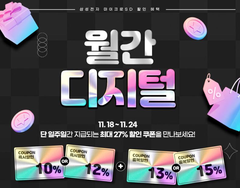 삼성전자 마이크로 SD 할인 이벤트 삼성전자 마이크로 SD 할인 이벤트 정보 포스팅입니다. 삼성전자 마이크로 SD 할인 이벤트를 진행하네요. 할인 품목 : EVO PLUS, PRO PLUS 이벤트 기간 : 2024년 11월 24일까지 삼성전자 마이크로 SD 할인 이벤트 정보 [링크] 핫딜/PC&가전 2024.11.23