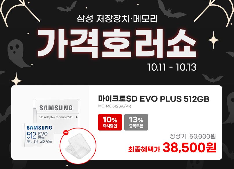 삼성 마이크로SD카드 EVO PLUS 512GB 할인 삼성 마이크로SD카드 EVO PLUS 512GB 할인 정보 포스팅입니다. 삼성 마이크로SD카드 EVO PLUS 512GB을 할인 판매하네요. 할인가 38500원 무료배송 삼성 마이크로SD카드 EVO PLUS 512GB 할인 정보 [링크] 핫딜/PC&가전 2024.10.13