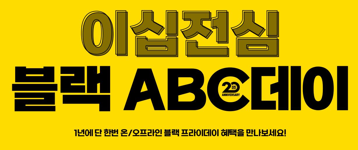ABC마트 블랙프라이데이 ABC마트 블랙프라이데이 정보 포스팅입니다. ABC마트 사이트에서 할인 이벤트를 진행하네요. 할인 품목 : 운동화, 부츠, 구두 등 ABC마트 블랙프라이데이 정보 [링크] 핫딜/패션&스포츠 2022.11.24