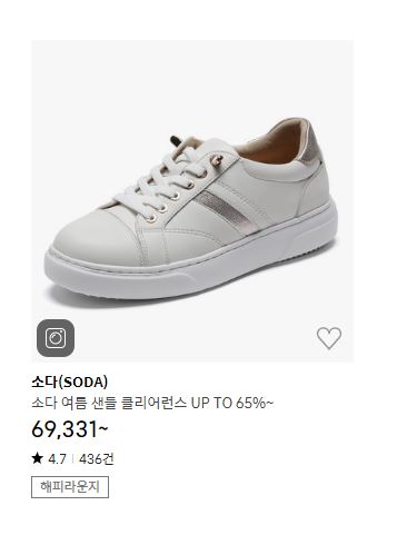 소다 클리어런스 최대 73% 세일 소다 클리어런스 최대 73% 세일 정보 포스팅입니다. 소다 다양한 제품을 할인 판매하네요. 할인 품목 : 운동화, 구두, 샌들 등 소다 클리어런스 최대 73% 세일 정보 [링크] 핫딜/패션&스포츠 2022.08.11