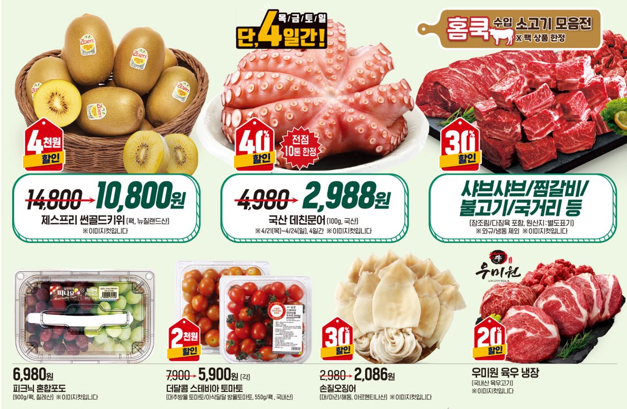 이마트 할인 이벤트 이마트 할인 이벤트 정보 포스팅입니다. 이마트 다양한 제품을 할인 판매하네요. 할인 품목 : 문어, 과일, 소고기 등 이마트 할인 이벤트 정보 [링크] 핫딜/식품&생활 2022.04.21